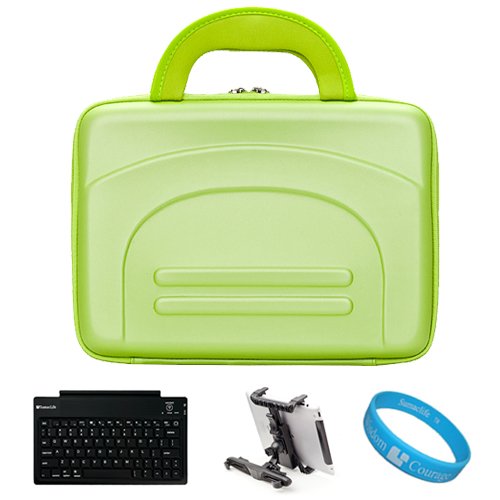 The Detailed Description of Nylon Eva Green Durable Cube Carrying Case for Lenovo IdeaPad Tablet K1 10.1-inch Display Wireless Computer Tablet + Car Headrest Tablet Mount + SumacLife Wireless Bluetooth Keyboard + SumacLife TM Wisdom*Courage WristbandFeatures