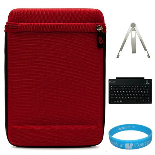 The Detailed Description of Red iCap Slim Edition Semi-Hard Carrying Case with Neoprene Bubble interior Padding for Lenovo IdeaPad Tablet K1 10.1-inch Display Wireless Computer Tablet + Universal Silver Tablet Stand + SumacLife Wireless Bluetooth Keyboard + SumacLife TM Wisdom*Courage WristbandFeatures