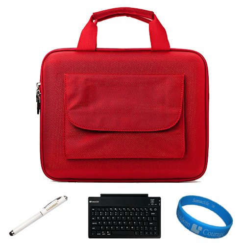 The Detailed Description of Nylon Red Durable Cube with Pocket Series Carrying Case with Pocket for Lenovo IdeaPad Tablet K1 10.1-inch Display Wireless Computer Tablet + White - Executive Stylus Pen with Laser Pointer and LED Light + SumacLife Wireless Bluetooth Keyboard + SumacLife TM Wisdom*Courage WristbandFeatures