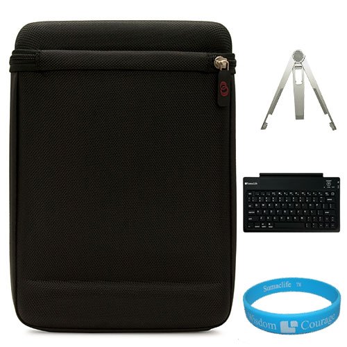 Safely carry your iPad with this EVA hard shell cube carrying case. Durable Protective Case Manufactured to fit Lenovo IdeaPad 10.1-inch Tablet. Provides maximum protection against unnecessary scratches and scuffs. Neoprene Bubble interior compliments your device with a soft-smooth texture. Offers complete protection // Smooth, non-scratch lining interior. Package also includes a metal stand is designed for those who want to work on their tablet or eReader. Designed with a fold-away secondary leg, instantly transforms from an easel to a pint-size work station, angled perfectly for typing on the device onscreen keyboard. Folded flat, is a mere 7-inches long by 1-inch wide. Package also includes a completely cable-free Wireless Keyboard uses Bluetooth technology to connect with your device. So you're free to move the keyboard just about anywhere within range and wirelessly type away. It's a 49 Key Input Keyboard with micro USB charging, built in rechargeable Li-ion battery and a color LED for working status indication. INCLUDES!!! SumacLife TM Wisdom Courage Wristband
