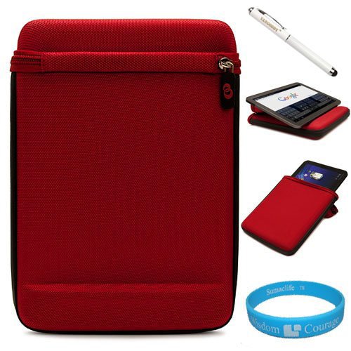The Detailed Description of Red iCap Slim Edition Semi-Hard Carrying Case with Neoprene Bubble interior Padding for Lenovo IdeaPad Tablet K1 10.1-inch Display Wireless Computer Tablet + White - Executive Stylus Pen with Laser Pointer and LED Light + SumacLife Wireless Bluetooth Keyboard + SumacLife TM Wisdom*Courage WristbandFeatures