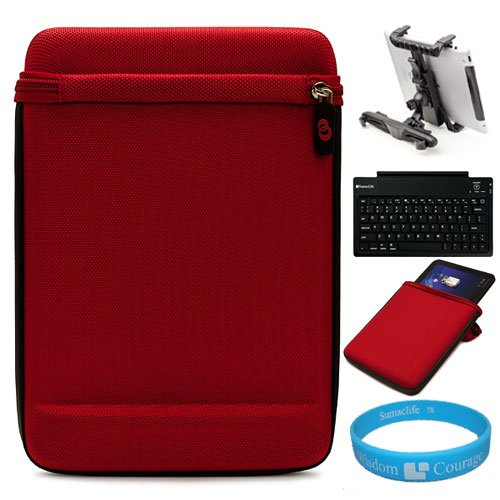 The Detailed Description of Red iCap Slim Edition Semi-Hard Carrying Case with Neoprene Bubble interior Padding for Lenovo IdeaPad Tablet K1 10.1-inch Display Wireless Computer Tablet + Car Headrest Tablet Mount + SumacLife Wireless Bluetooth Keyboard + SumacLife TM Wisdom*Courage WristbandFeatures