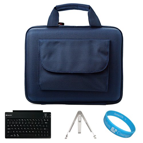 The Detailed Description of Nylon Blue Durable Cube with Pocket Series Carrying Case with Pocket for Lenovo IdeaPad Tablet K1 10.1-inch Display Wireless Computer Tablet + Universal Silver Tablet Stand + SumacLife Wireless Bluetooth Keyboard + SumacLife TM Wisdom*Courage WristbandFeatures