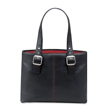 Features padded laptop pocket, protective feet and pebble grain vinyl. Color lining makes finding items easy. With business organizer pockets and adjustable padded shoulder straps for shoulder comfort. Fits laptops up to 16". For Device Type: Laptop; Material(s): Vinyl; Carrying Method: Shoulder Strap; Color(s): Black/Red.