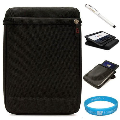 The Detailed Description of Black iCap Slim Edition Semi-Hard Carrying Case with Neoprene Bubble interior Padding for Lenovo IdeaPad Tablet K1 10.1-inch Display Wireless Computer Tablet + White - Executive Stylus Pen with Laser Pointer and LED Light + Universal Silver Tablet Stand + SumacLife Wireless Bluetooth Keyboard + SumacLife TM Wisdom*Courage WristbandFeatures