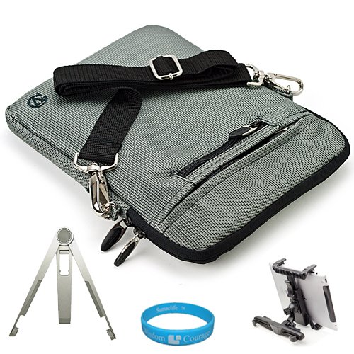 The Detailed Description of Hydei Edition Silver Grey Nylon Carrying Case with Removable Shoulder Strap for HP Touchpad 9.7-inch Tablet Computer fits all Models (16GB, 32GB) + Silver Tablet Metal Stand + Universal Car Headrest Mount Holder + SumacLife TM Wisdom Courage WristbandFeatures