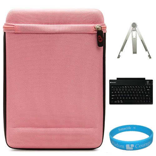 The Detailed Description of Pink iCap Slim Edition Semi-Hard Carrying Case with Neoprene Bubble interior Padding for Lenovo IdeaPad Tablet K1 10.1-inch Display Wireless Computer Tablet + Universal Silver Tablet Stand + SumacLife Wireless Bluetooth Keyboard + SumacLife TM Wisdom*Courage WristbandFeatures