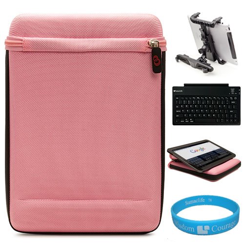 The Detailed Description of Pink iCap Slim Edition Semi-Hard Carrying Case with Neoprene Bubble interior Padding for Lenovo IdeaPad Tablet K1 10.1-inch Display Wireless Computer Tablet + Car Headrest Tablet Mount + SumacLife Wireless Bluetooth Keyboard + SumacLife TM Wisdom*Courage WristbandFeatures